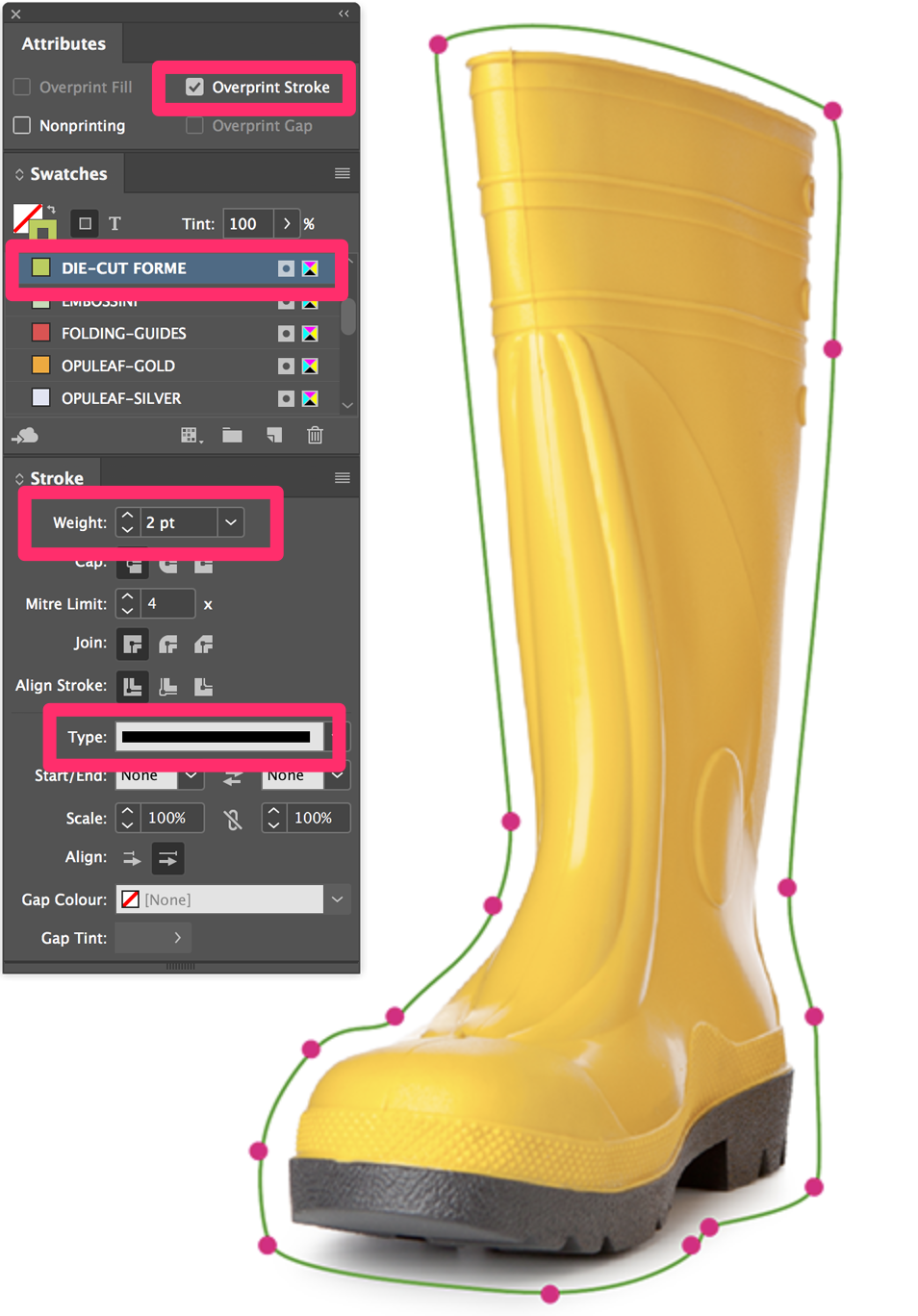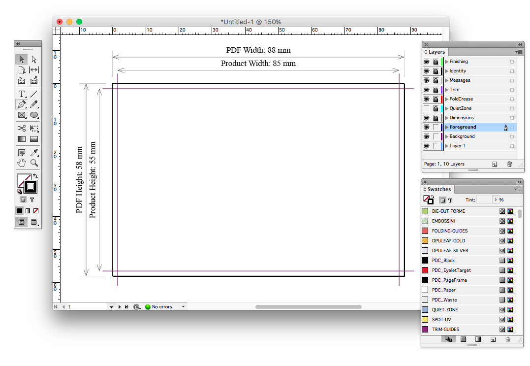 Finishing Printable layer: Finishing elements that must be topmost on the artwork and are required for printing die-cuts, spot uv and folders (Folder Style ID box for example).