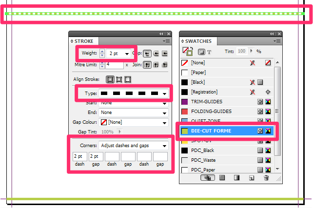 • Unless it is vital to your design, make sure that die-cut lines do not encroach within 3 mm of the edge of the page. It could impact on the finishing of your order if lines are placed within 3mm of the page edge.