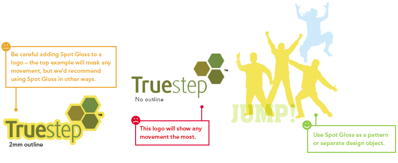• Keep creases and cuts at least 2 mm away from SPOT-UV elements to avoid cracking of the Spot UV.