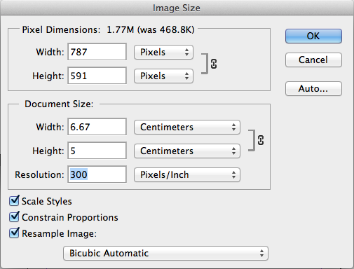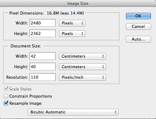 Don’t enlarge or reduce your bitmap images in your drawing/vector software (such as Illustrator) – it’s always best to use an image-editing application such as Photoshop for this task.