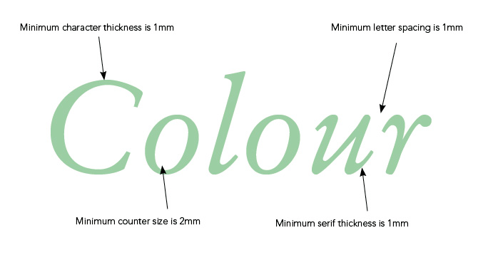 Black and white line art that has been converted to a bitmap (i.e. a logo) should be saved at 1200dpi for best results. Any lower, and the logo may look blurry. Pay careful attention to the CMYK makeup of any ‘black’ in your logo. The automatically-created Photoshop black, for example, is made up of varying percentages of CMYK. You may need to adjust the colour settings in your application to get a sharper black that is made from 100% black ink.