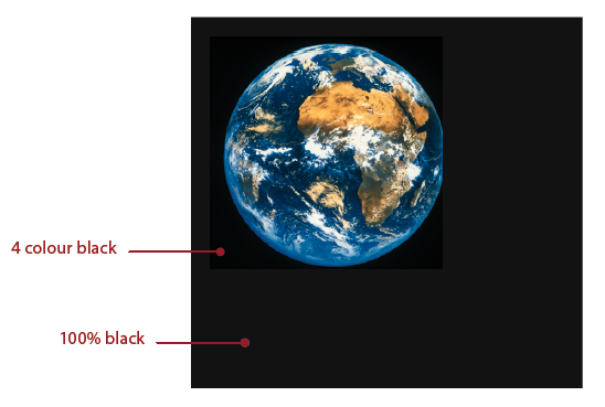 Also be aware that black within a photograph as a background may have a different CMYK make-up to other parts of your design. This will be noticeable when printed, even if not on screen. Placing a photograph with a black background over a black area in InDesign®, for example, may reveal a difference between the two shades of black when printed.