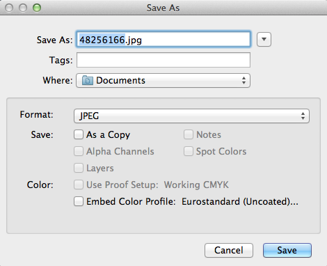 When saving your file, ensure that you have set the artwork up in the correct colour mode for the product that you are ordering. Most products are produced in CMYK process colour. If RGB or LAB colours are found they will be converted to CMYK which will result in some colour shift. We do not recommend supplying files in RGB or LAB as it's unlikely they'll print as expected. Pantone Colours will also be converted to CMYK (where applicable) with the same results.